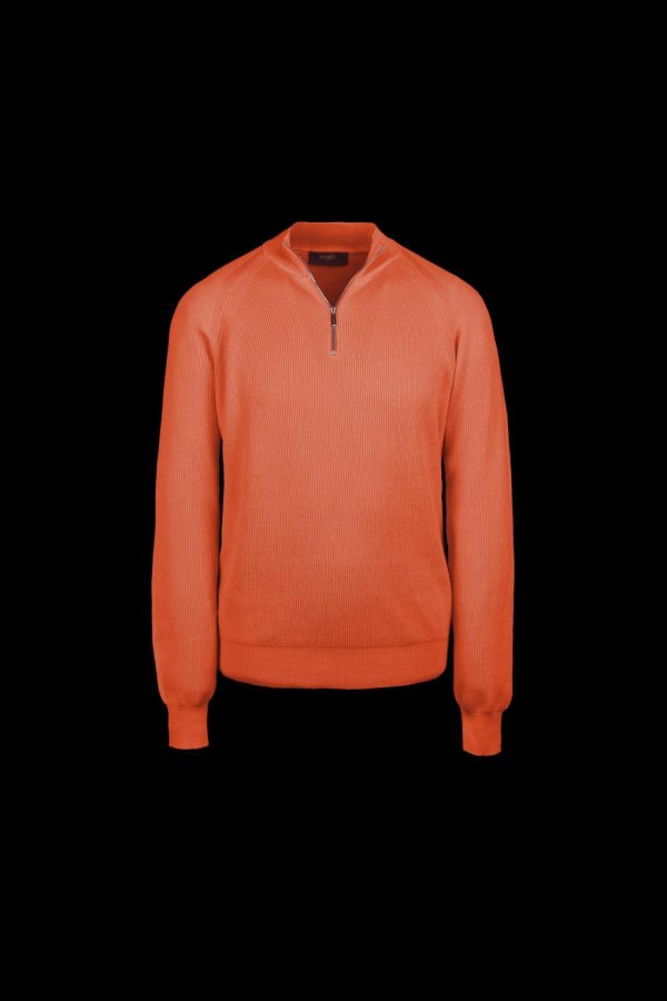 Maglia mezzo collo a costa inglese realizzata in pregiato cotone coltivato esclusivamente in una piccola area nel delta del Nilo. Questo cotone dalle lunghe fibre vanta il pregio e la morbidezza del Giza 45 e del Suvin indiano, ed è quello che gli egizi chiamavano “l’oro bianco” per la sua straordinaria setosità, resistenza alle pieghe, traspirabilità e purezza.