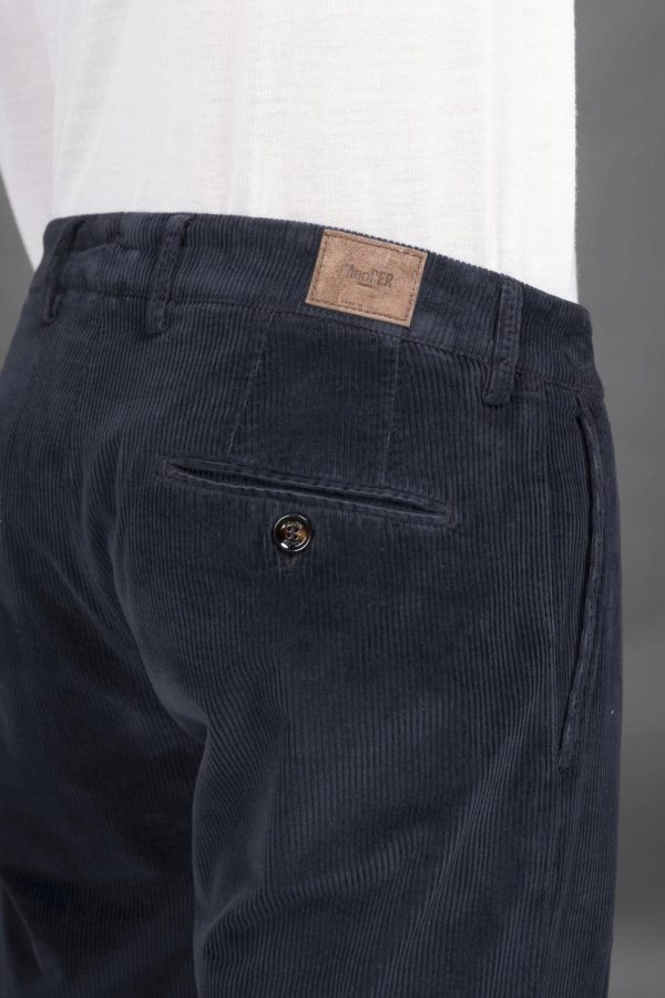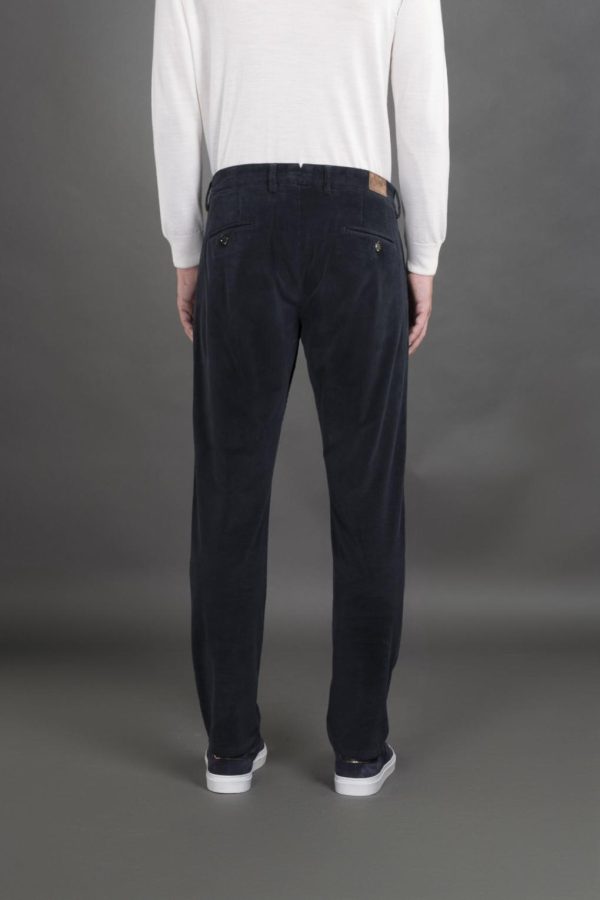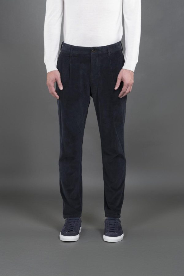 Pantaloni chinos con una pince, dal taglio moderno e confortevole. Realizzati in velluto a coste 500 righe tinto in capo, in finissimo cotone elasticizzato.