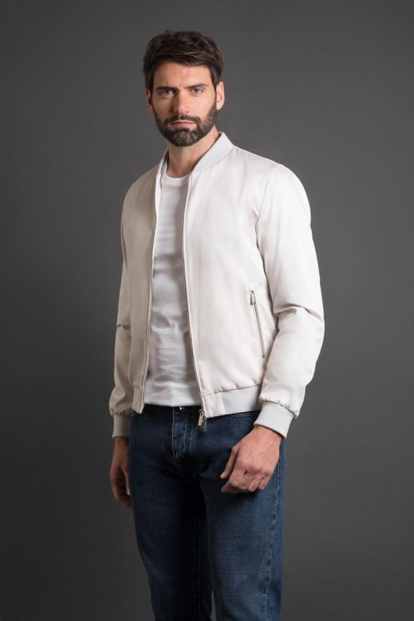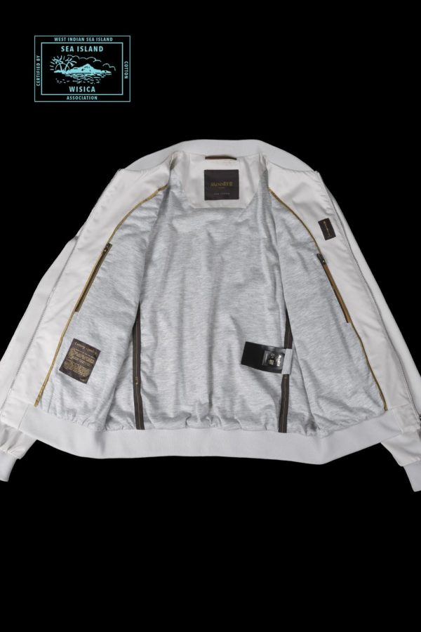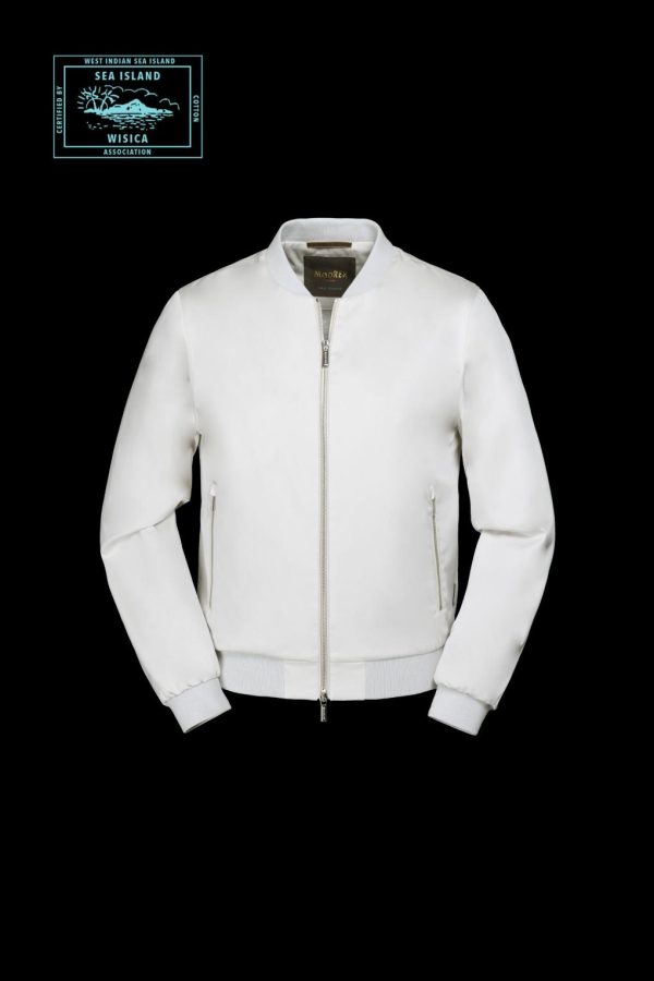 Bomber realizzato in seta mista ad un materiale d’Eccellenza: Sea Island cotton, il cotone più prezioso al mondo, un filato dalle caratteristiche eccezionali. Questo connubio dà vita ad un filato fine e resistente, perfettamente bilanciato, leggero e fresco.
